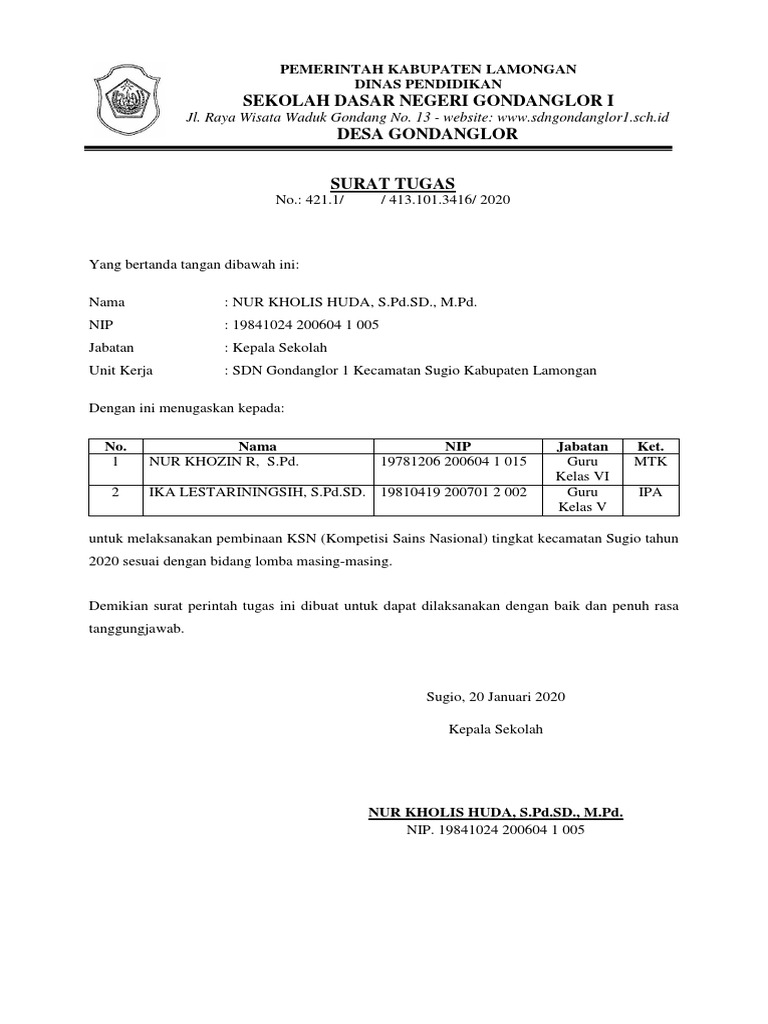 Contoh Surat Tugas Guru Pendamg Lomba Vandi Id