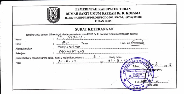 Contoh Surat Keterangan Sakit Dari Dokter Puskesmas Nusagates
